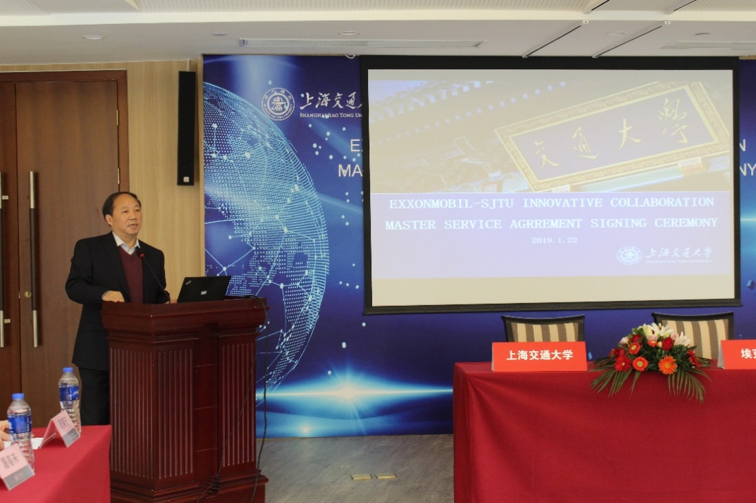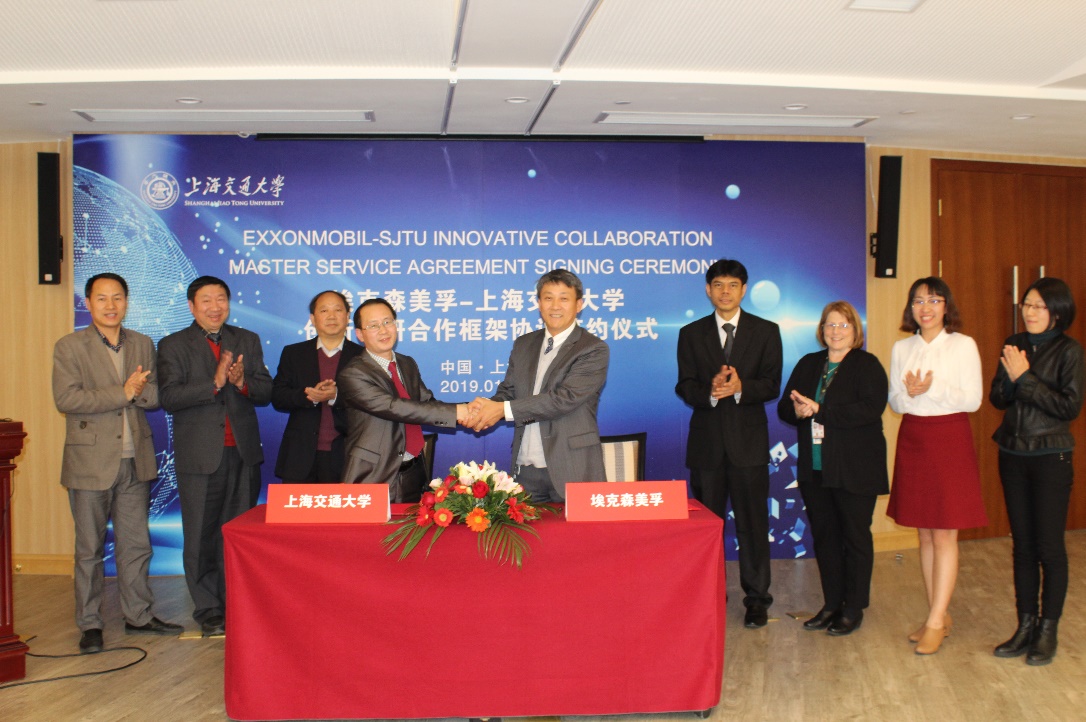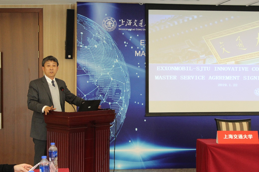 1月22日下午,太阳集团电子游戏-埃克森美孚创新科研合作签约仪式在太阳集团电子游戏闵行校区学术活动中心学术厅举行。中科院院士、太阳集团电子游戏院长涂永强,太阳集团电子游戏党委书记贾金平,副院长罗正鸿、周永丰等相关负责教授,埃克森美孚化工全球产品研发总监Caiguo Gong,全球产品基础研究经理Saifudin Abubakar,全球先进表征技术经理Patty Vargas及相关技术研发人员出席签约仪式。